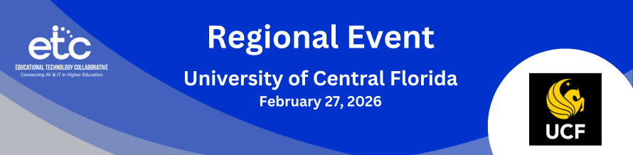 Join us at the University of Central Florida for an ETC Regional Event on Friday, February 27, 2026 from 9a-2p! Save the date and stay tuned as details are announced for the event.